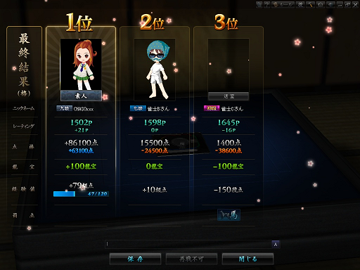 んで結局1位で終了!!!
